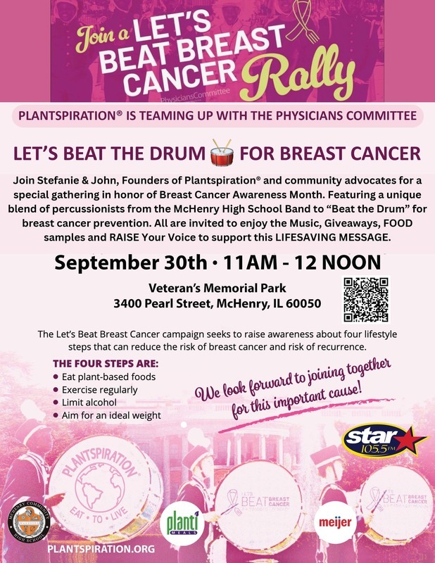 Set for 11 a.m. to 12 p.m., the free event features drumline performances, food trucks, giveaways from sponsoring organizations, and more. The program is hosted by the Physicians Committee for Responsible Medicine and McHenry-based Plantspiration to raise awareness of nutrition and a healthy lifestyle to reduce the risk of breast cancer.