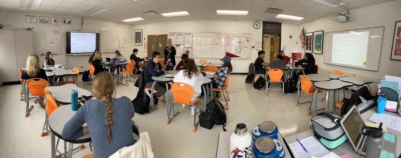 Lukas, who is currently teaching AP Statistics and Algebra 2, said she has found using Desmos, an online math platform, helpful in teaching online. Similar to Pear Deck, another online teaching tool, Desmos allows her to see students’ work as they are doing it.